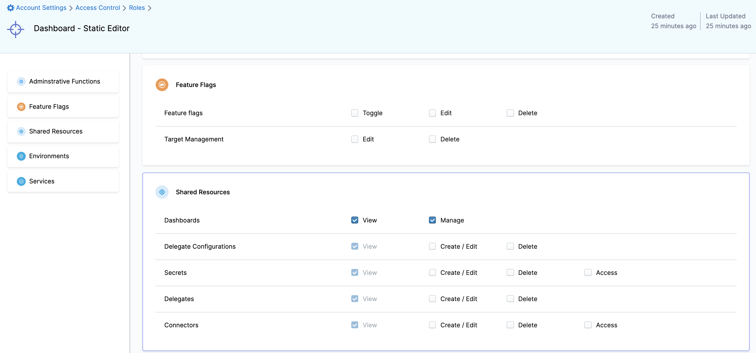 Perform the following steps to add and manage permissions Dashboard - Static Editor role.