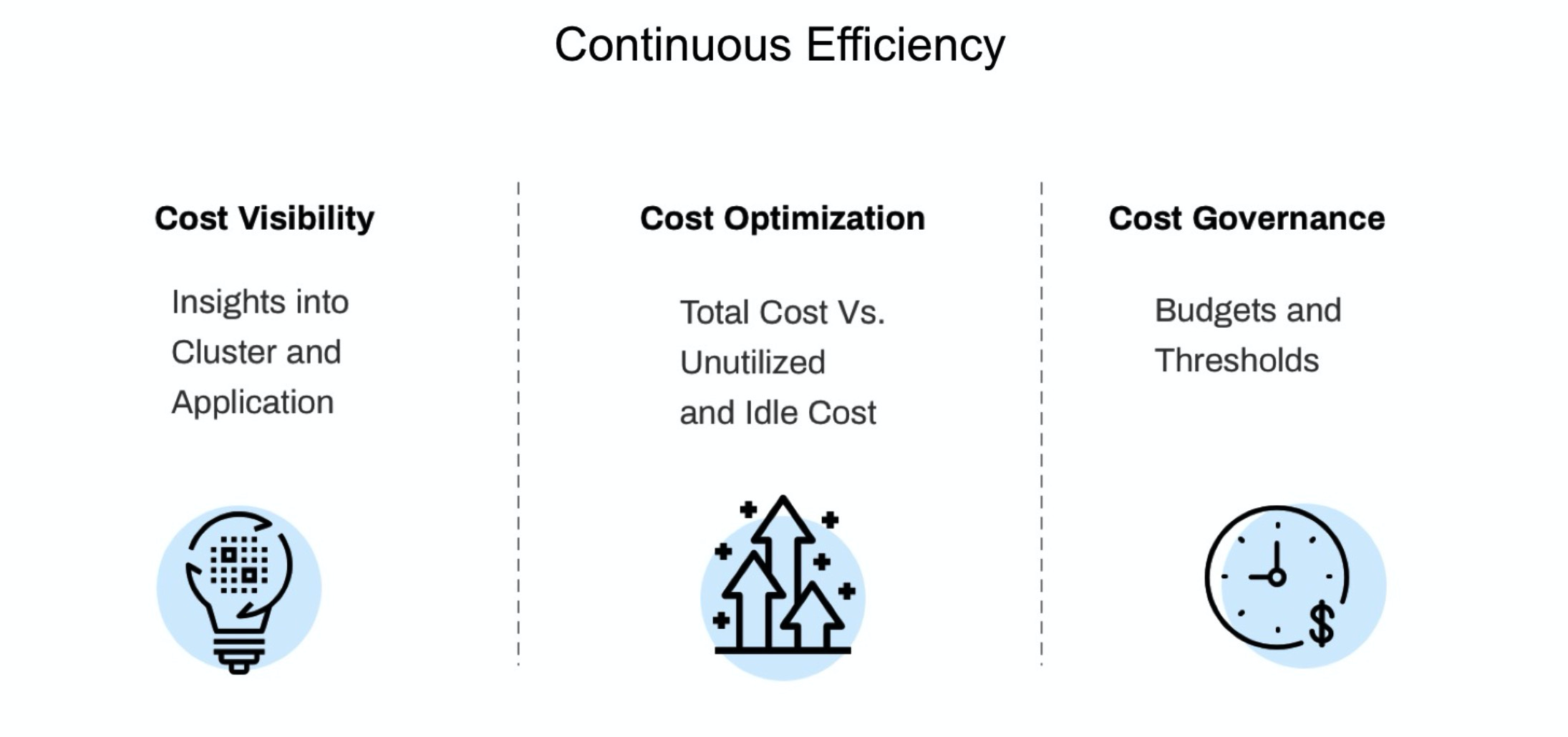 - Cost Visibility: Insights into the costs of your Harness Applications and clusters. Provides granular cost details of your cluster namespaces, workloads, nodes, pods, and labels. Details of total cost versus utilized, idle, and unallocated cost. Forecasts future spend based on historical data.