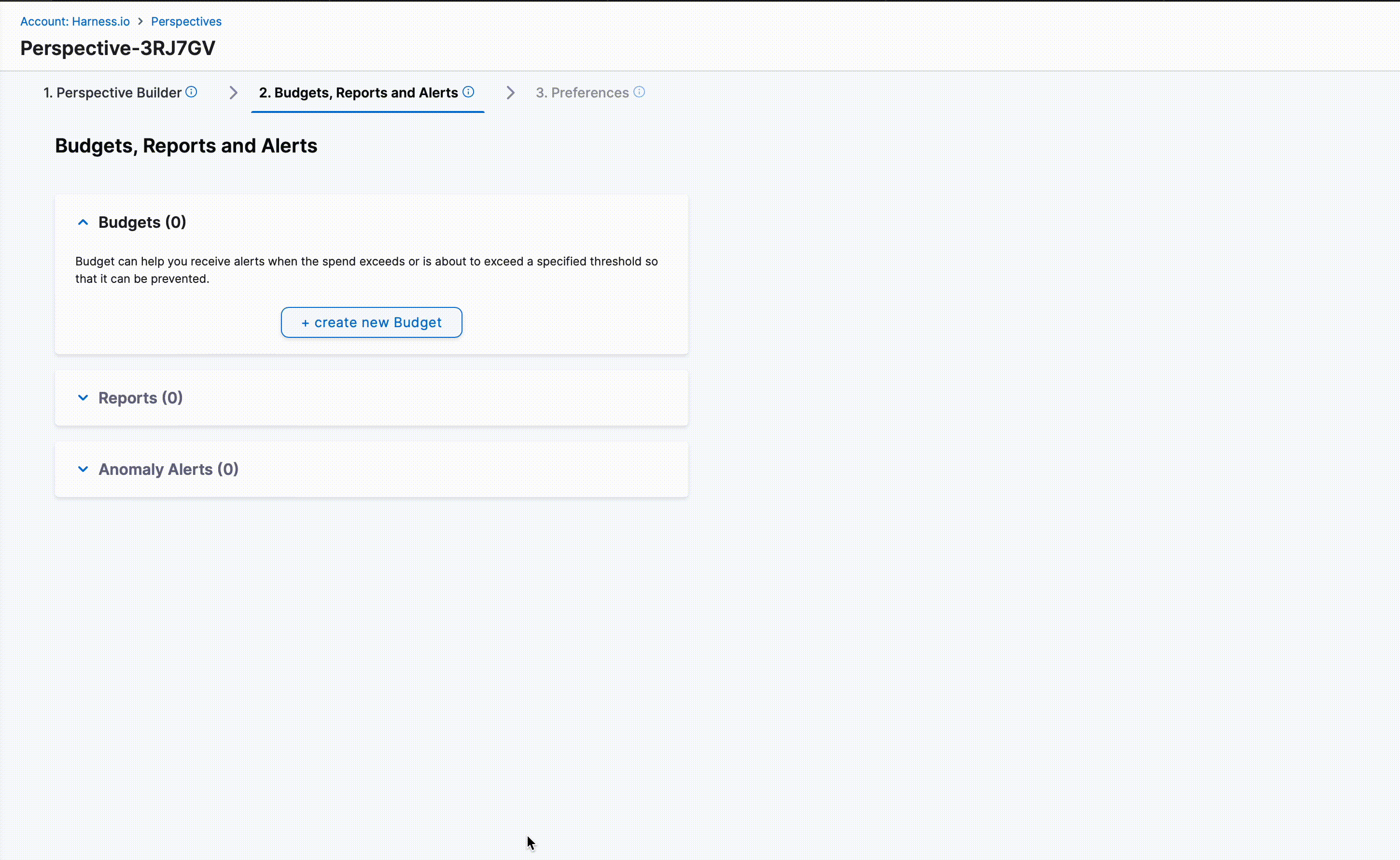 You can add multiple budgets for a single Perspective. Click on +create a new Budget to add a new budget and set up Target, Budget Amount and Configure Alerts.