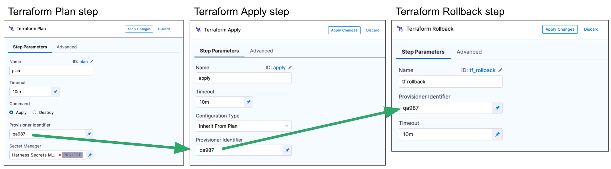 In Provisioner Identifier, enter the same Provisioner Identifier you used in the Terraform Plan and Apply steps.