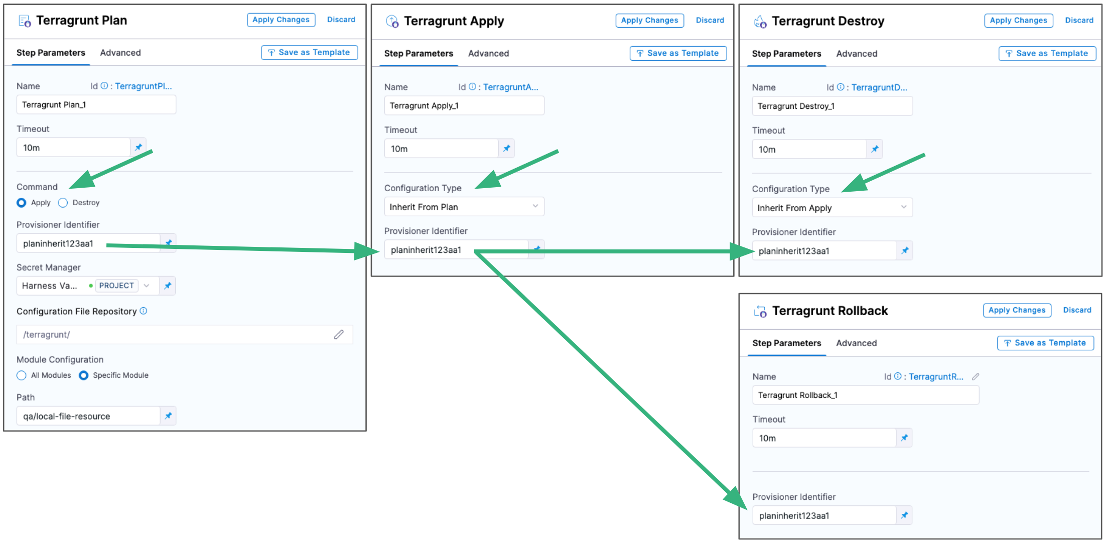 - Reference the Terragrunt Apply or Plan step using the same Provisioner Identifier.