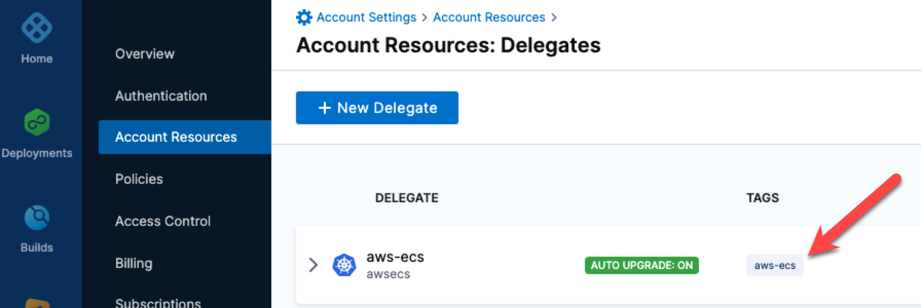 If you wish to install an ECS Fargate type delegate please see AWS ECS Fargate Delegate Installation Overview.