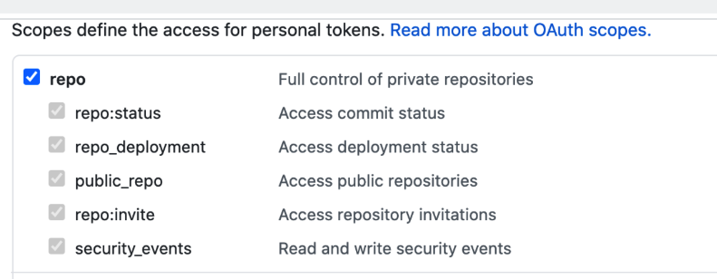 https://github.com/wings-software/harness-docs.git. - Username and Token: Enter the username and a Github Personal Access Token for your Github account. You'll have to create a Harness secret for the password.
