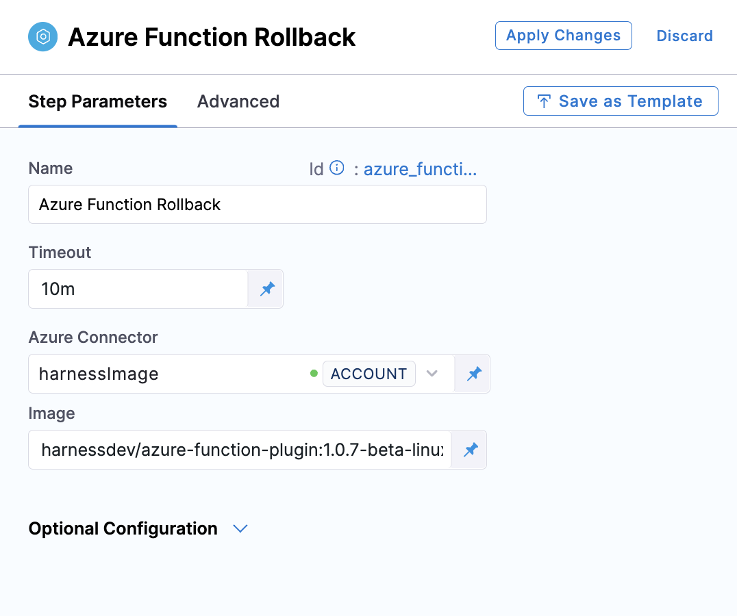 - Deployment Slot: Enter the name of the Source slot for the deployment. This slot is where Harness deploys the new Azure Function version. Make sure the slot you enter is running.