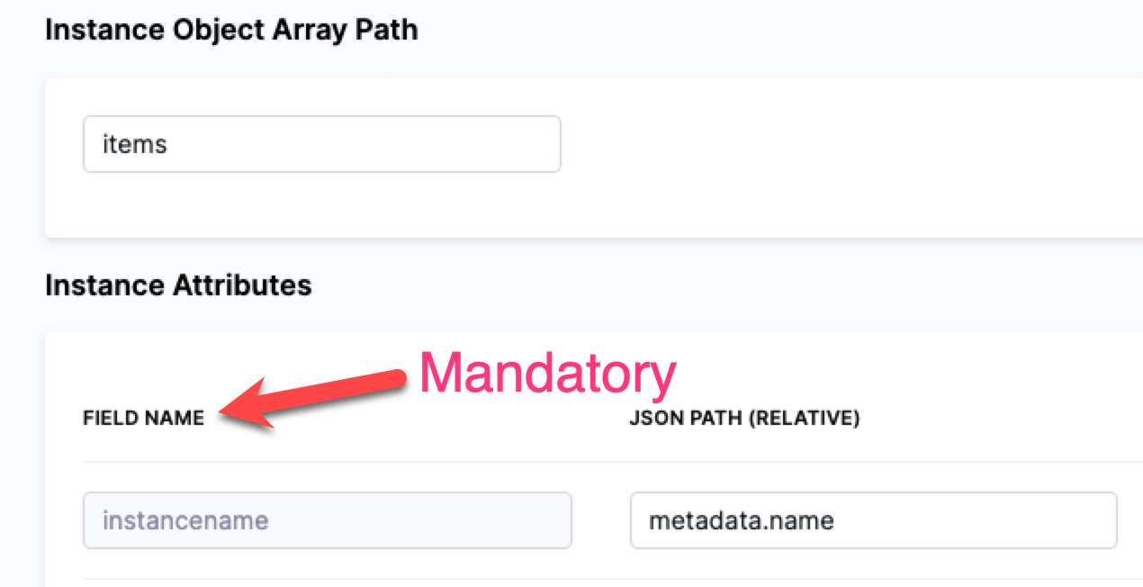 items. - Instance Attributes: the JSON path to the instance name label for the target instances.Mapping the fieldname