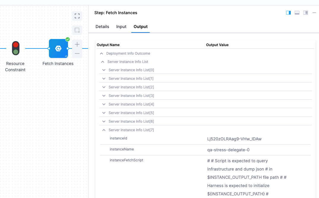 - In your Harness Pipeline stage Execution, review the automatically added Fetch Instances step, and move it to wherever you want to execute the script from your Deployment Template.