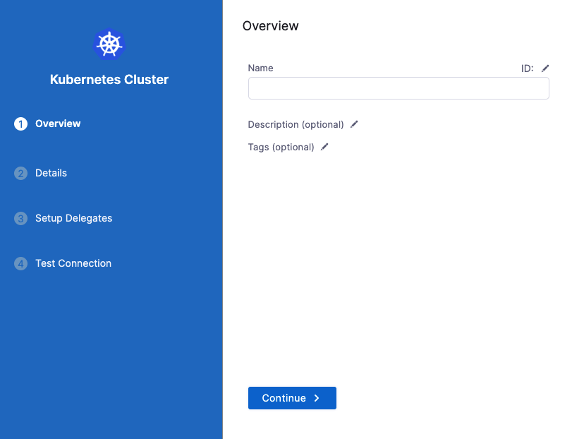 - Enter the tag of the new Delegate and select Save and Continue. When you are done, the Connector is tested.
