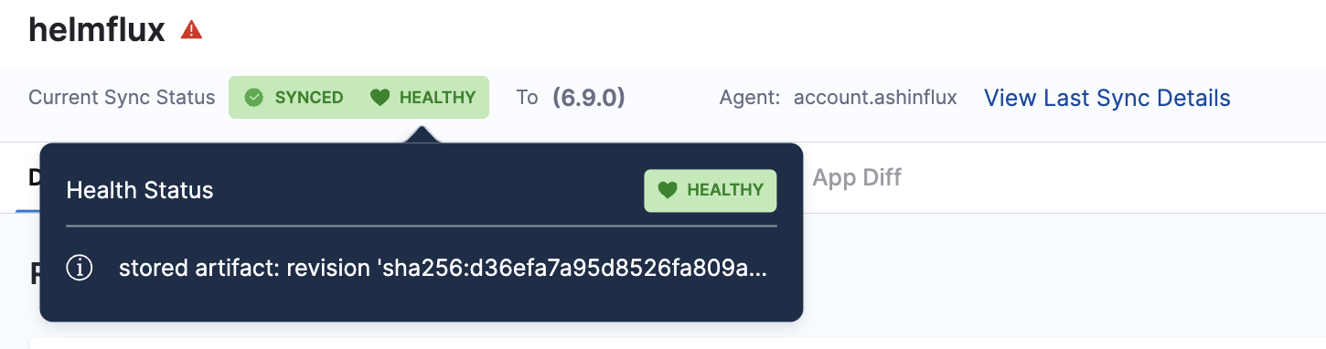 - Diff: The diff between the source manifest and application if they are out of sync.