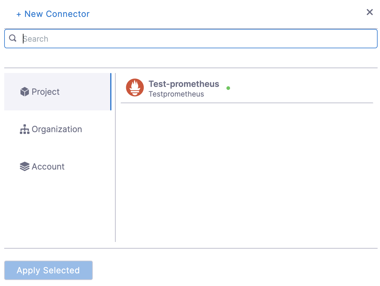 After selecting the connector, click Apply Selected. The Connector is added to the Health Source.