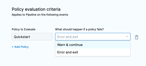 Also, select how you want the pipeline to handle policy evaluation failures: