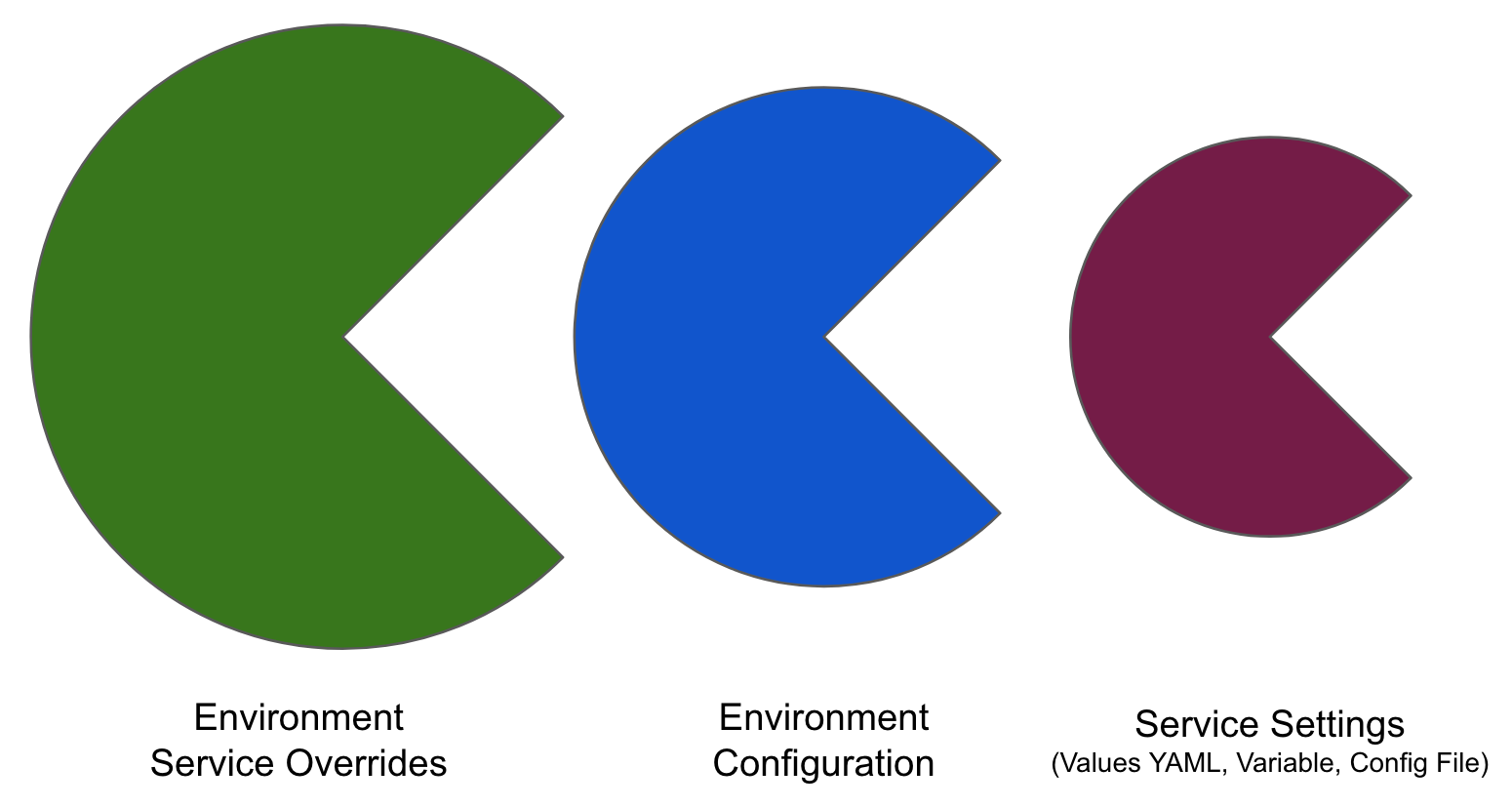 When you have Config files at two or more of the environment Service Overrides, Configuration, and the service itself, the standard override priority is applied.
