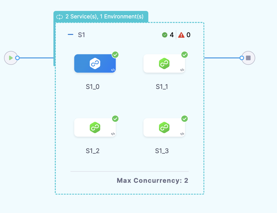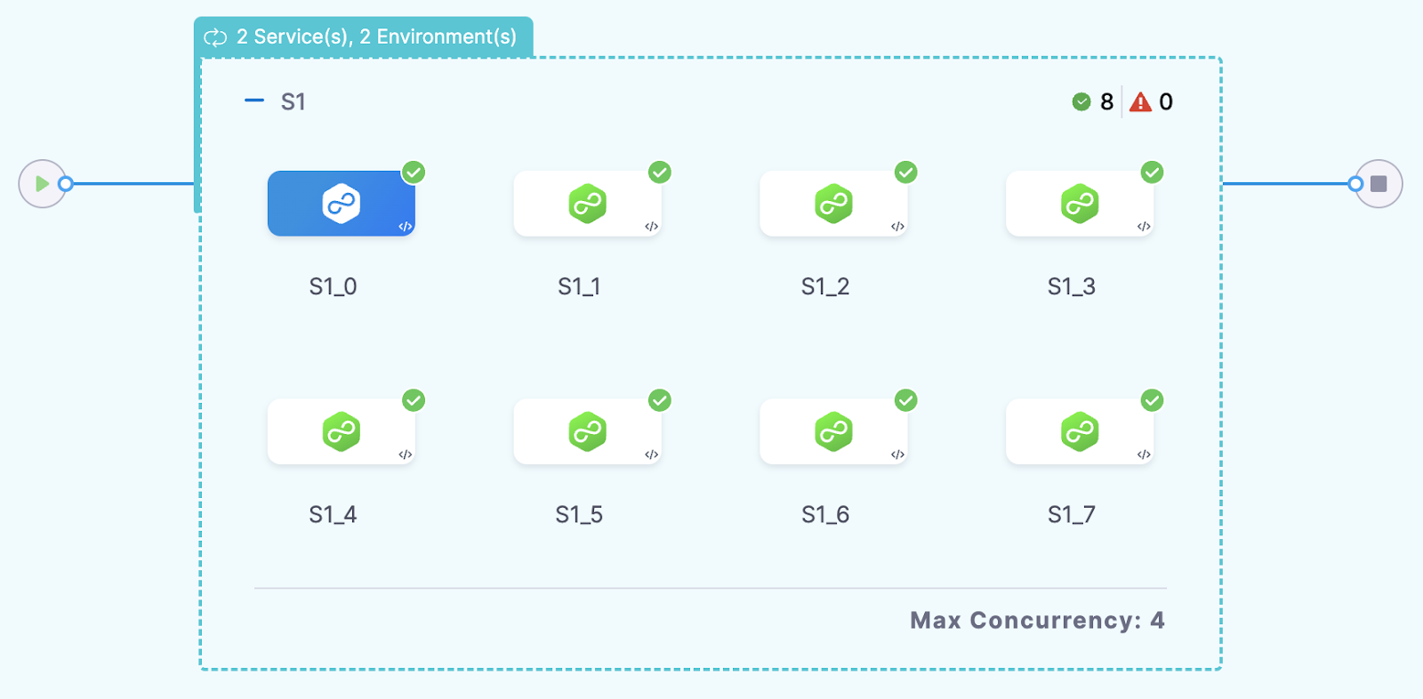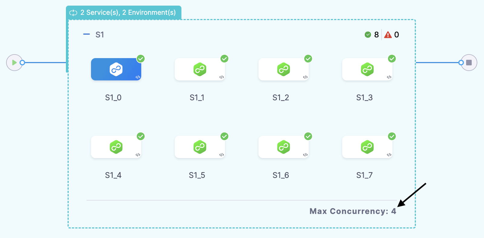 - If you select Deploy services in parallel and Deploy to Environments or Infrastructures in parallel, Max concurrency is equal to the number of services multiplied by the number of environments.
