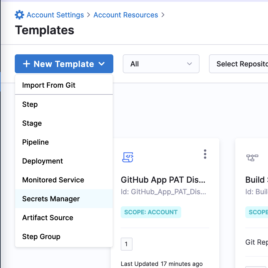 Go to your Harness Account Settings and select Templates under Account Resources.
