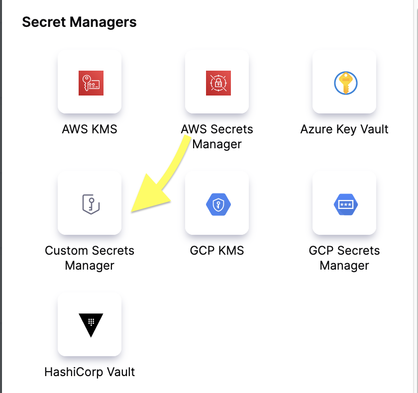 Select New Connector, and then select Custom Secrets Manager under Secrets Managers.
