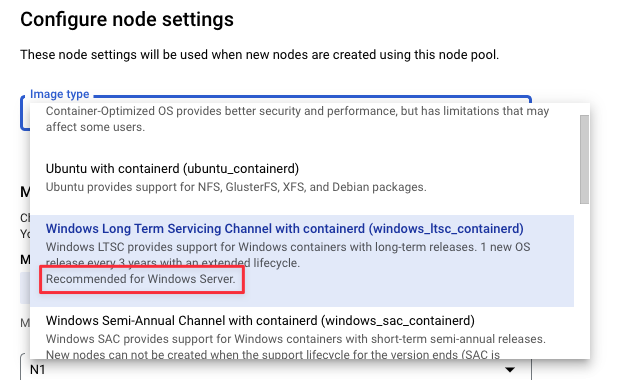 GKS: Use the recommended image type for Windows Server 2019 or 2022.