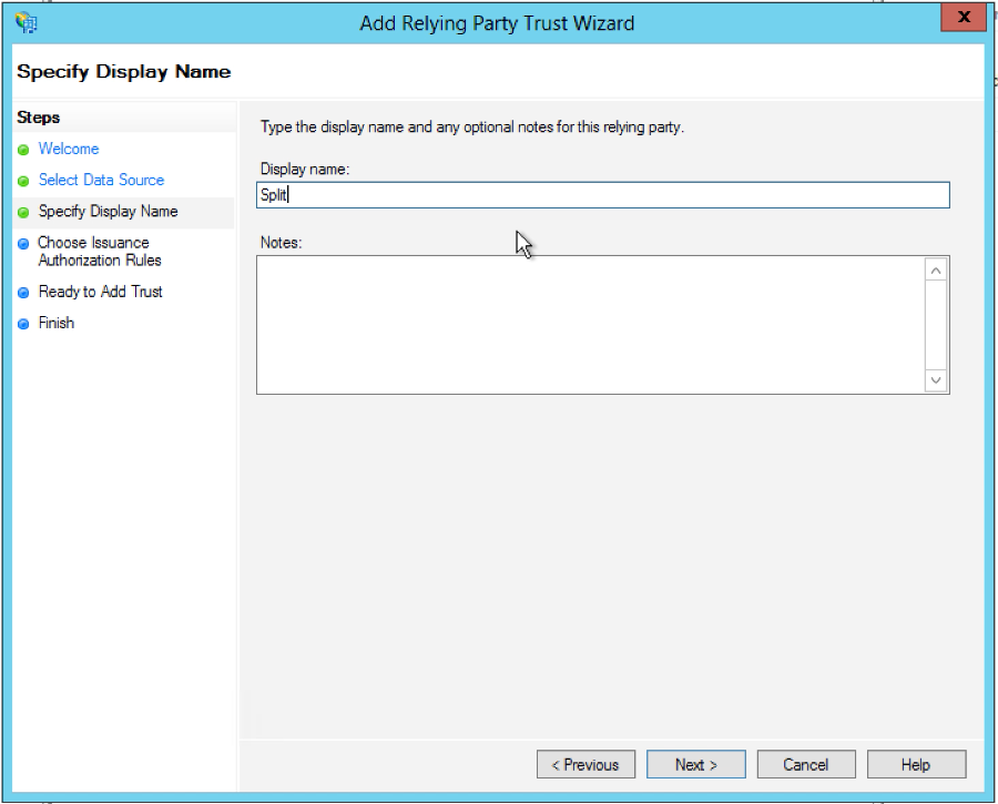 Provide a display name for the Trust, for example, Split, and then click Next.