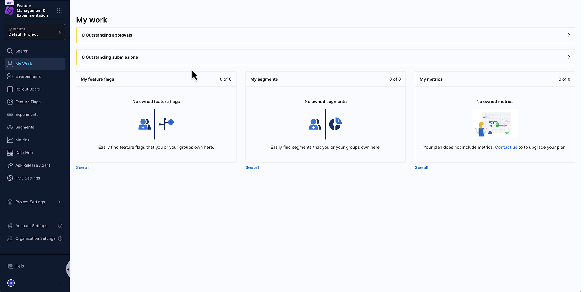 Plan Organization created Project location Resource group Free Default Harness organization Default organization All Project Level ResourcesEnterprise <legacy Split account name> FMEDedicated FME organization FME All Resources- On the Free plan, legacy Split projects are recreated as Harness projects in the default Harness organization.