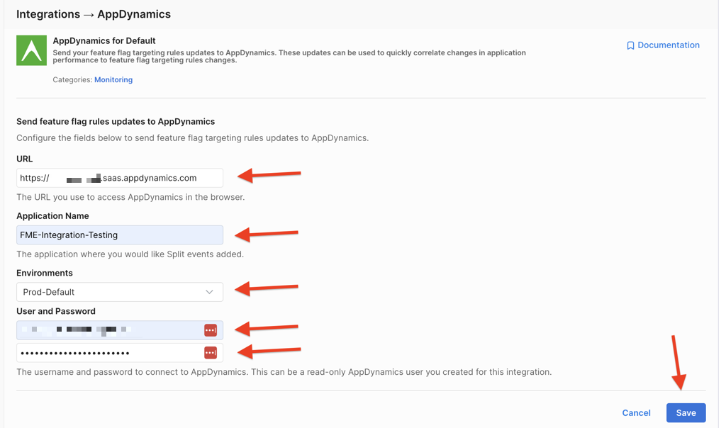 After creating an Administrator role and a user within that role in Splunk AppDynamics, configure the AppDynamics integration in Harness FME.