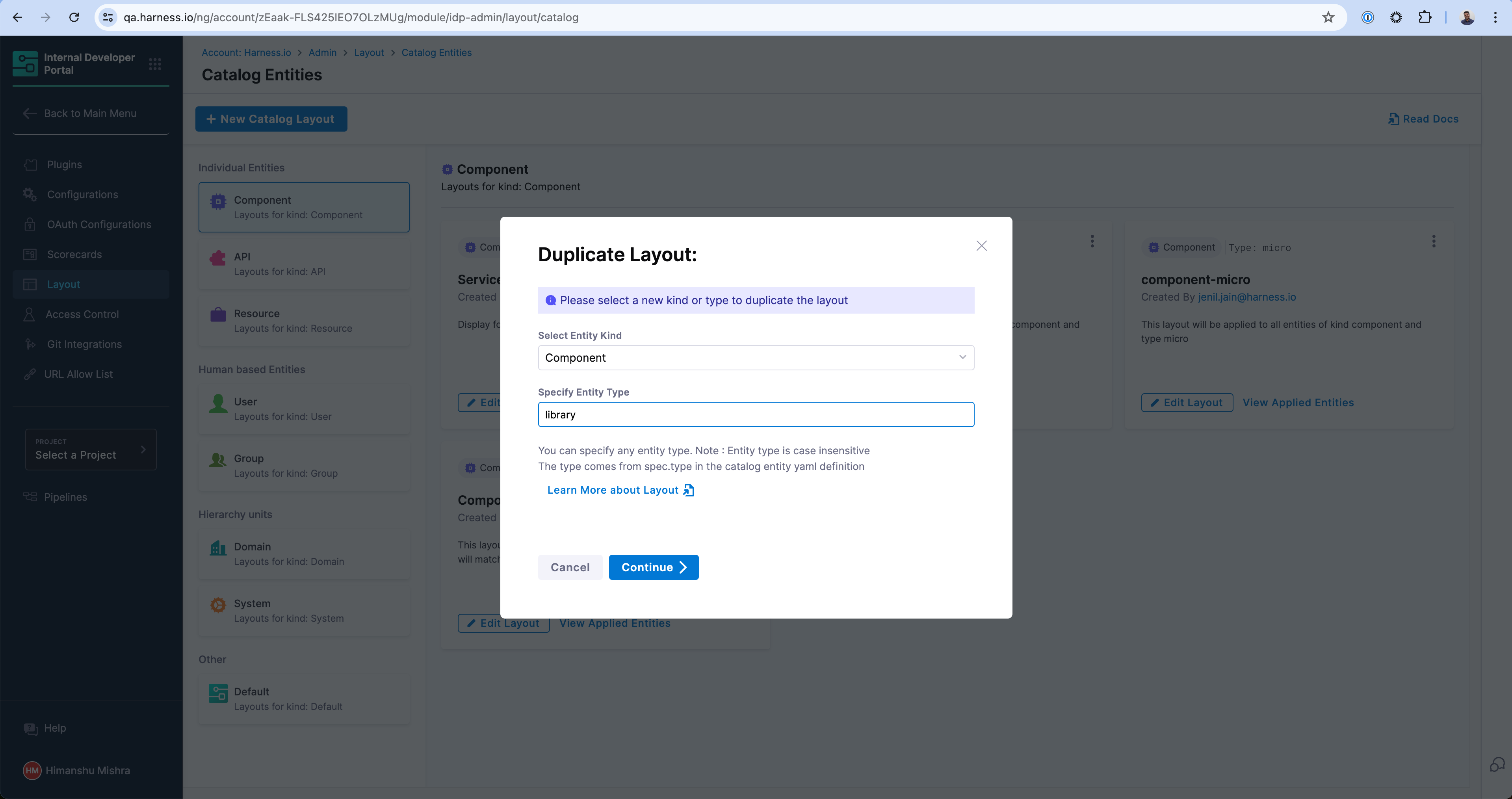 Enter a unique type that this layout will be applicable to. In this example, we're creating one for library to represent internal software libraries.