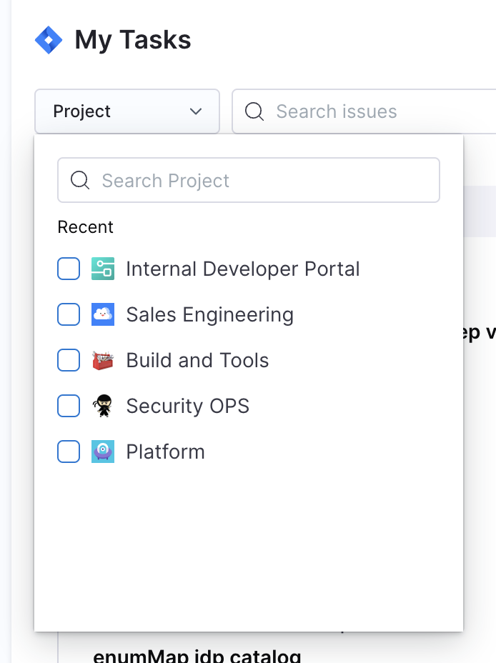 How to Set Up: Access to this JIRA card is authenticated via OAuth Configurations in IDP. To populate your task list, you need to add your Atlassian OAuth App client secret and ID in the configurations page, then developers can login from the homepage.