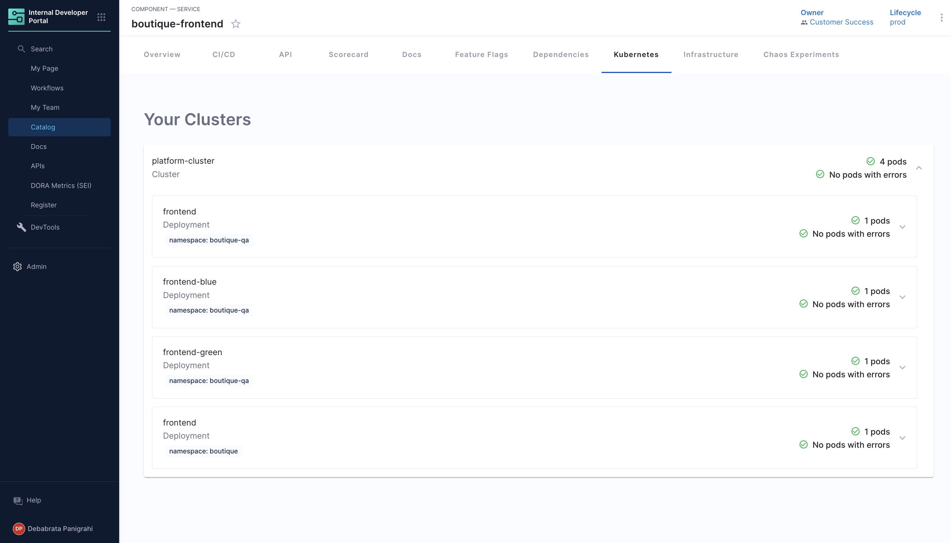 In order for IDP to detect that an entity has Kubernetes components, the following annotation should be added to the entity's catalog-info.yaml: