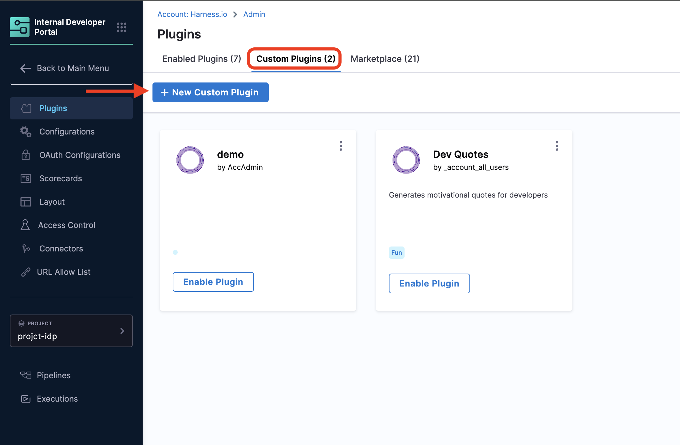 This feature is in BETA and is available behind the feature flag IDP_ENABLE_CUSTOM_PLUGINS. If you want to try out this feature, please reach out to the IDP team. We would love to work with you and take feedback.