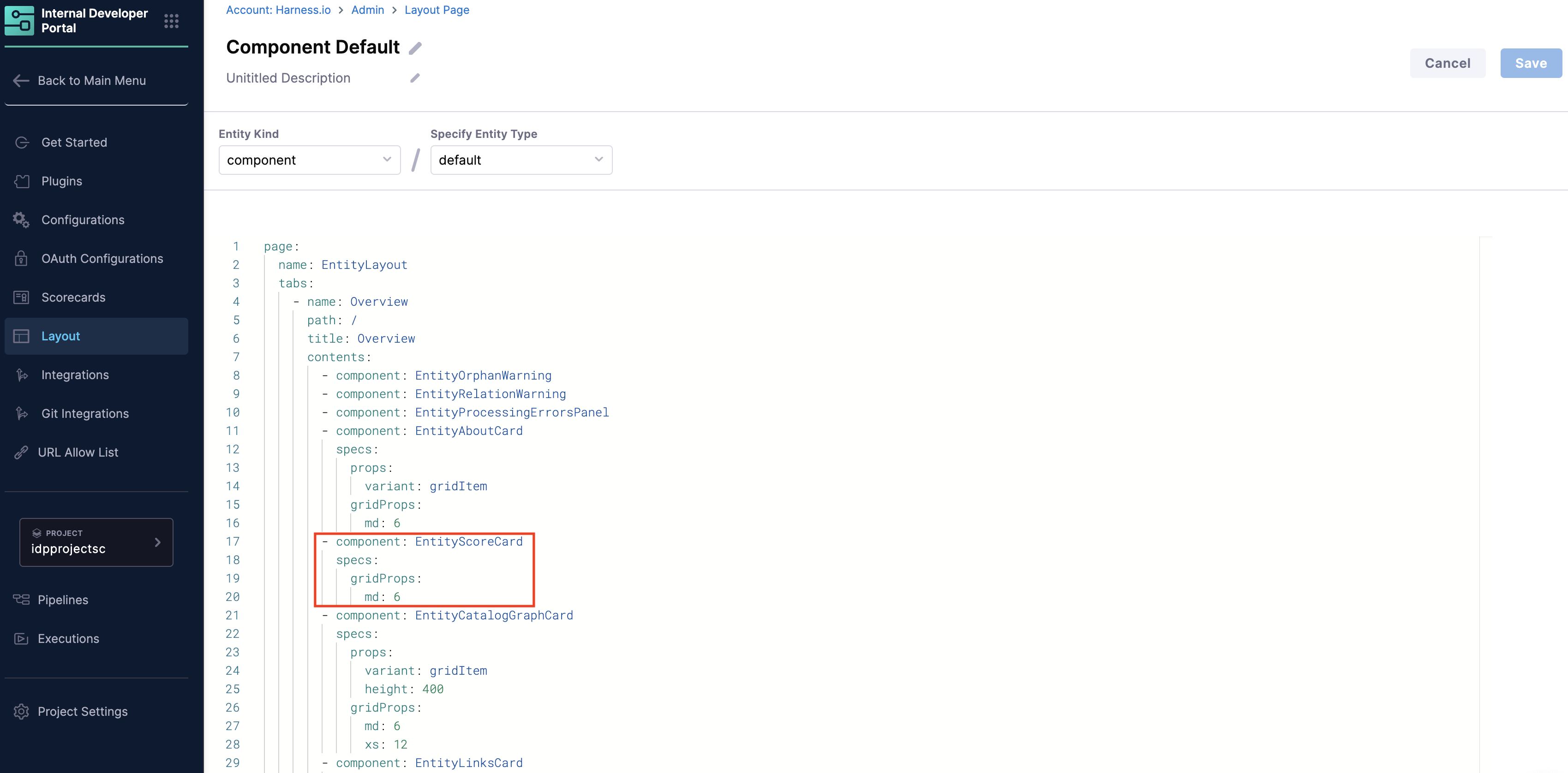 - Go to the Configure -> Layout in Harness IDP.