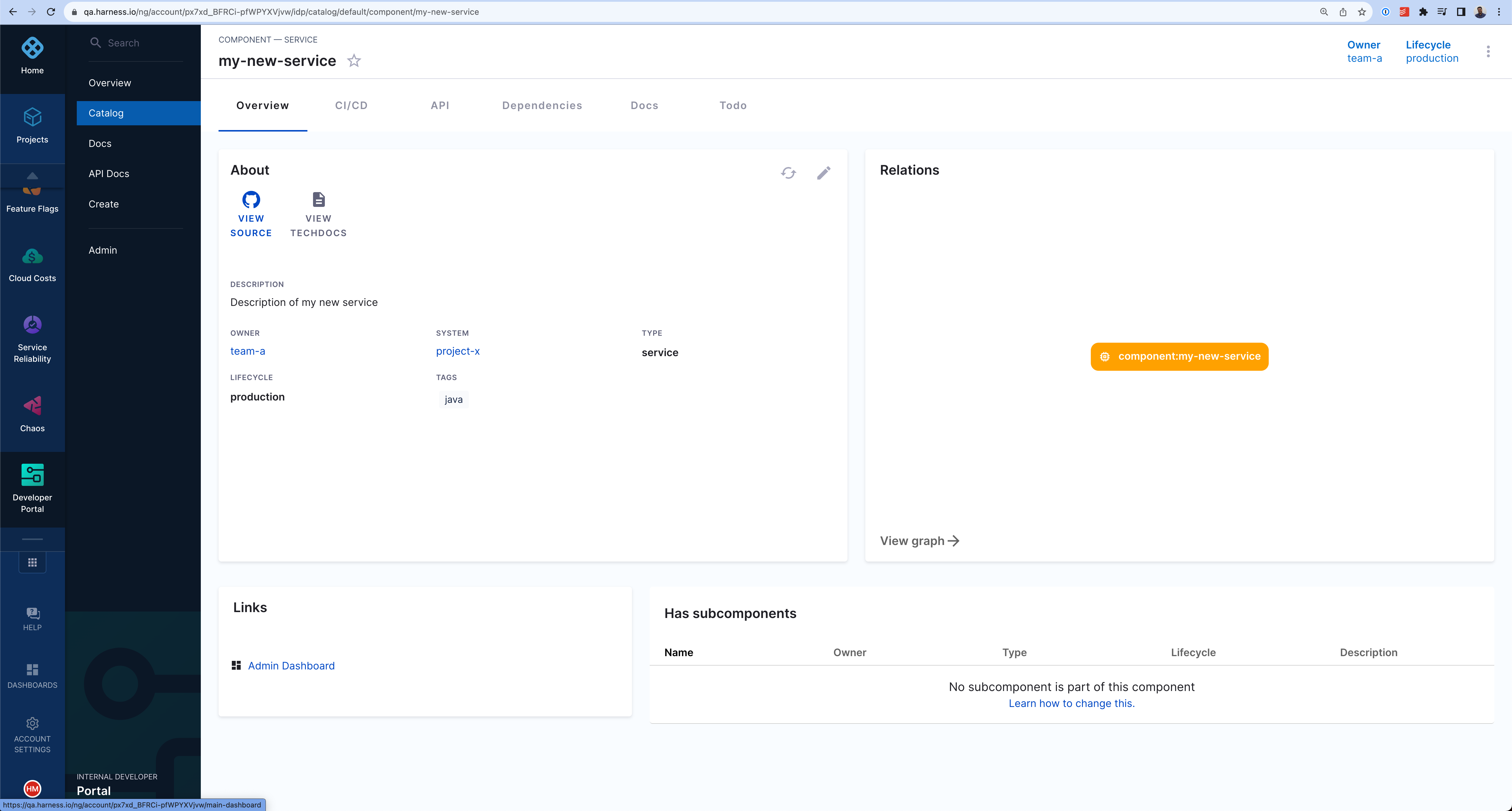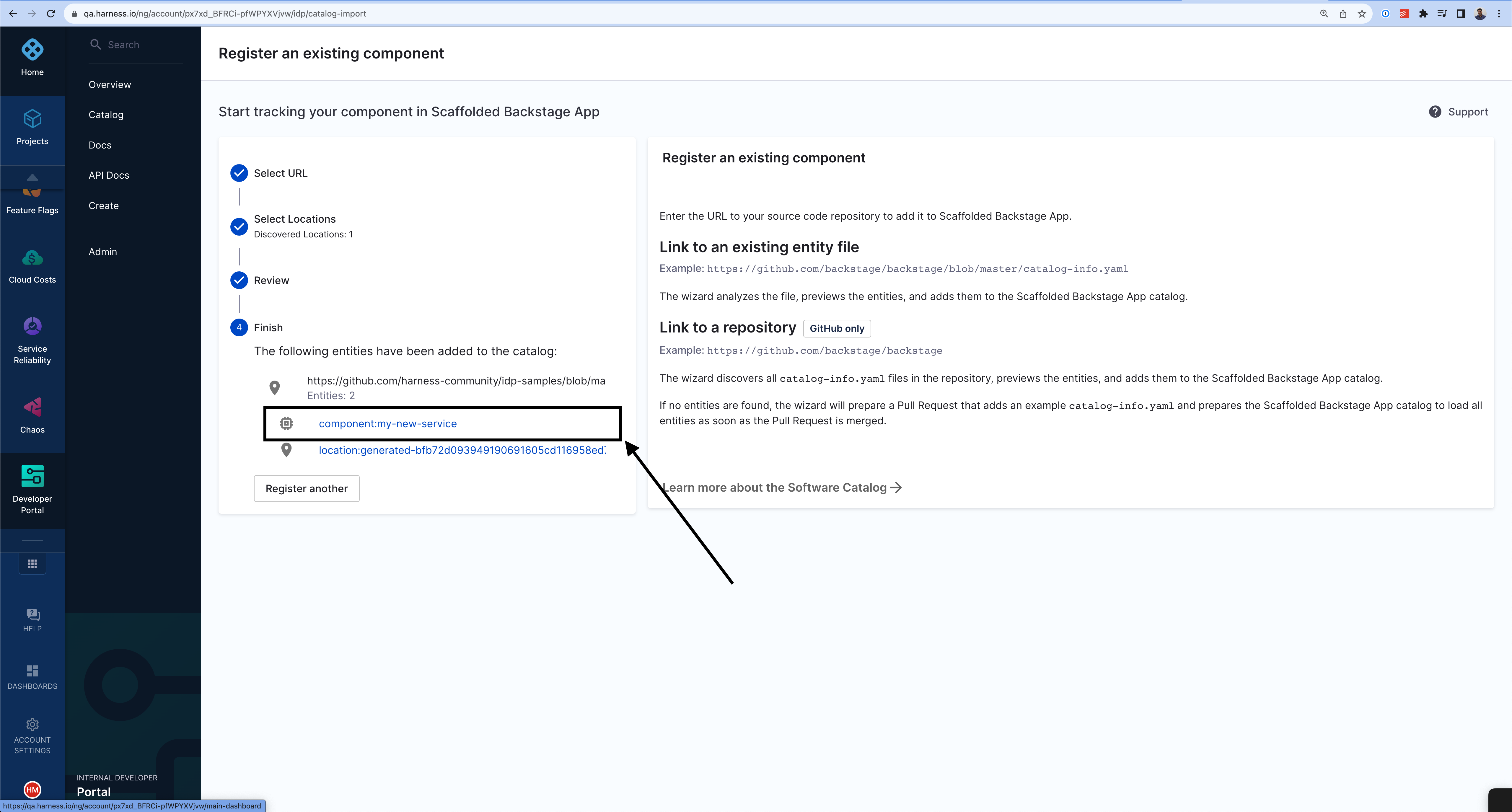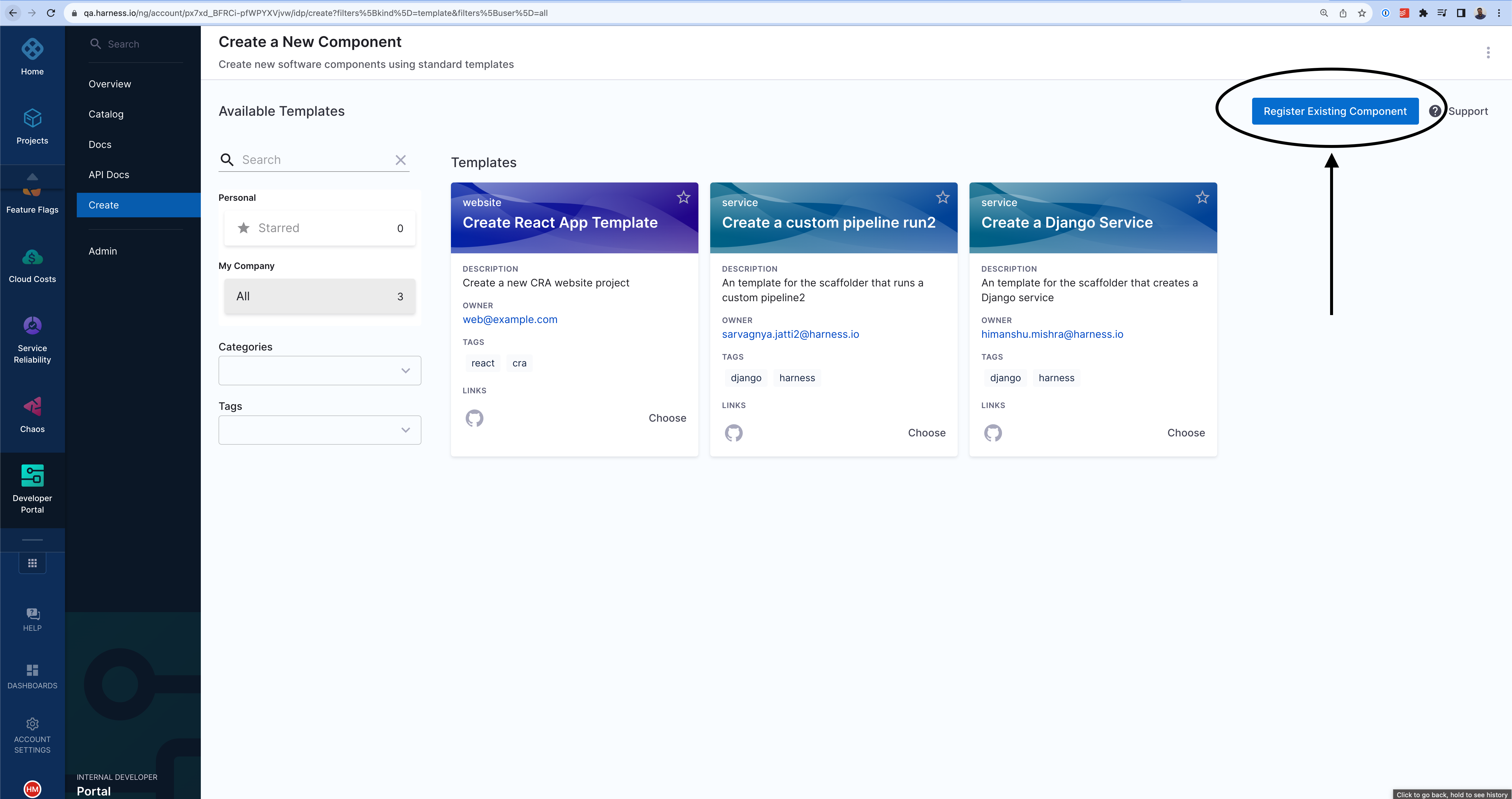 To register this component with Harness IDP, you'll need to submit this YAML file to the appropriate API endpoint or Register the existing component using UI.
