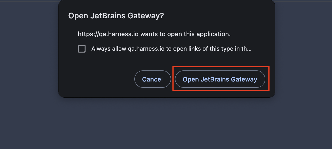 - A prompt will appear requesting permission to open JetBrains Gateway and establish a connection with the remote server. Click "Open JetBrains Gateway".