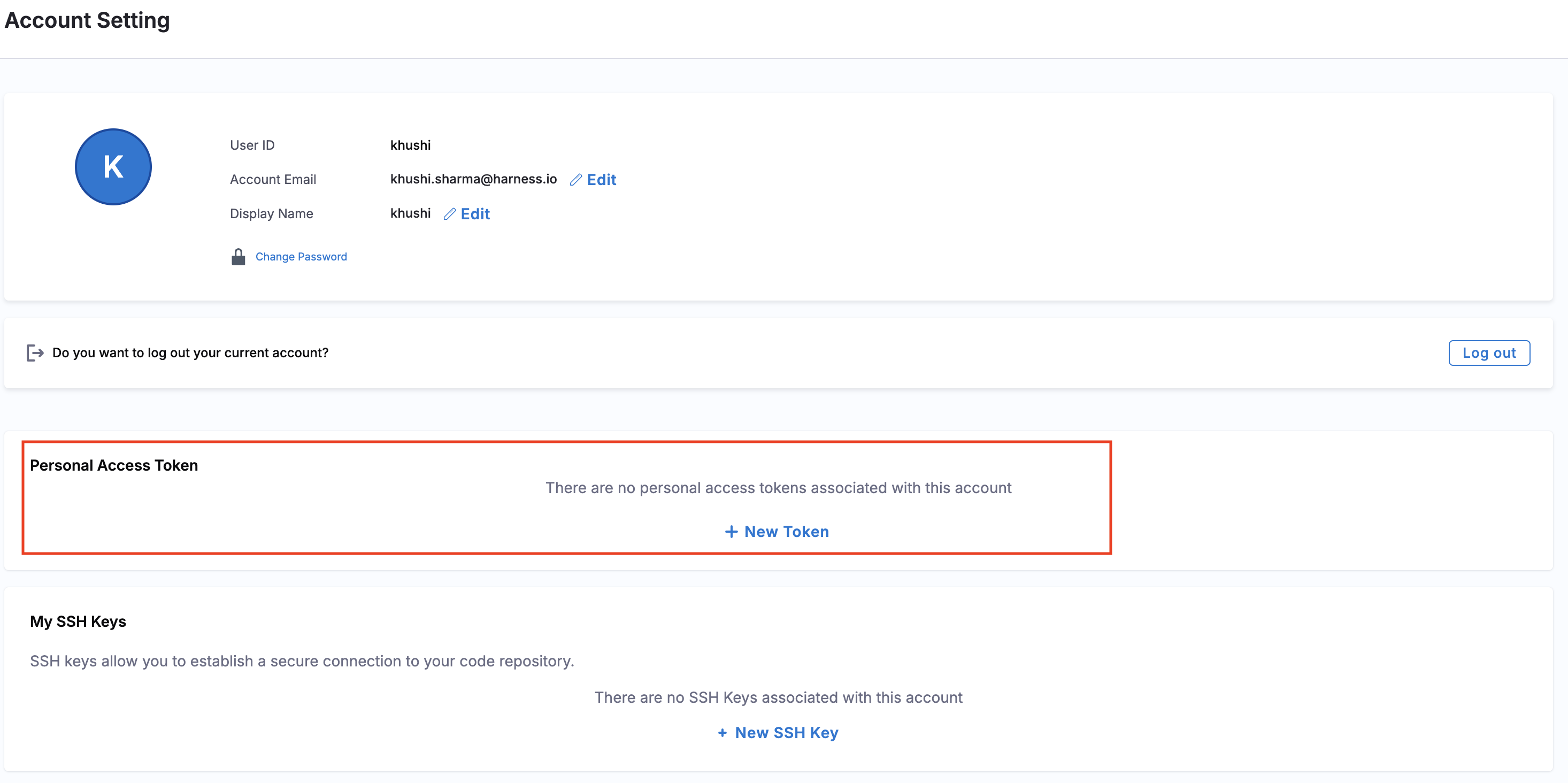 To create a token, go to the Harness Open Source UI and open your profile section.
