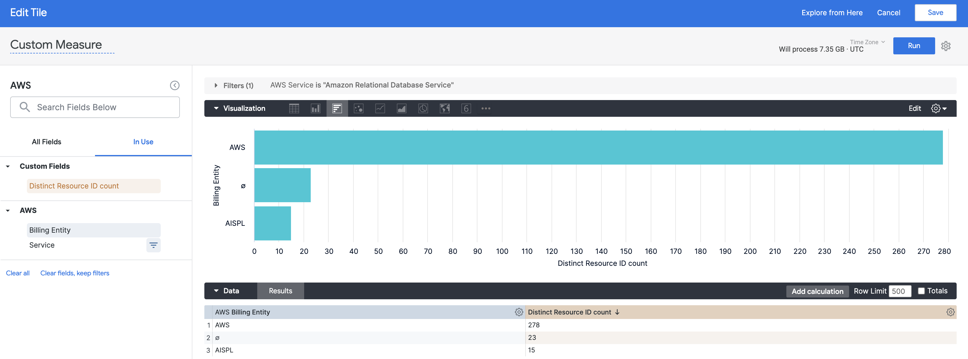 - In Edit custom measure, in Field to measure select the field for which you want to create measure. For example, Resource ID.