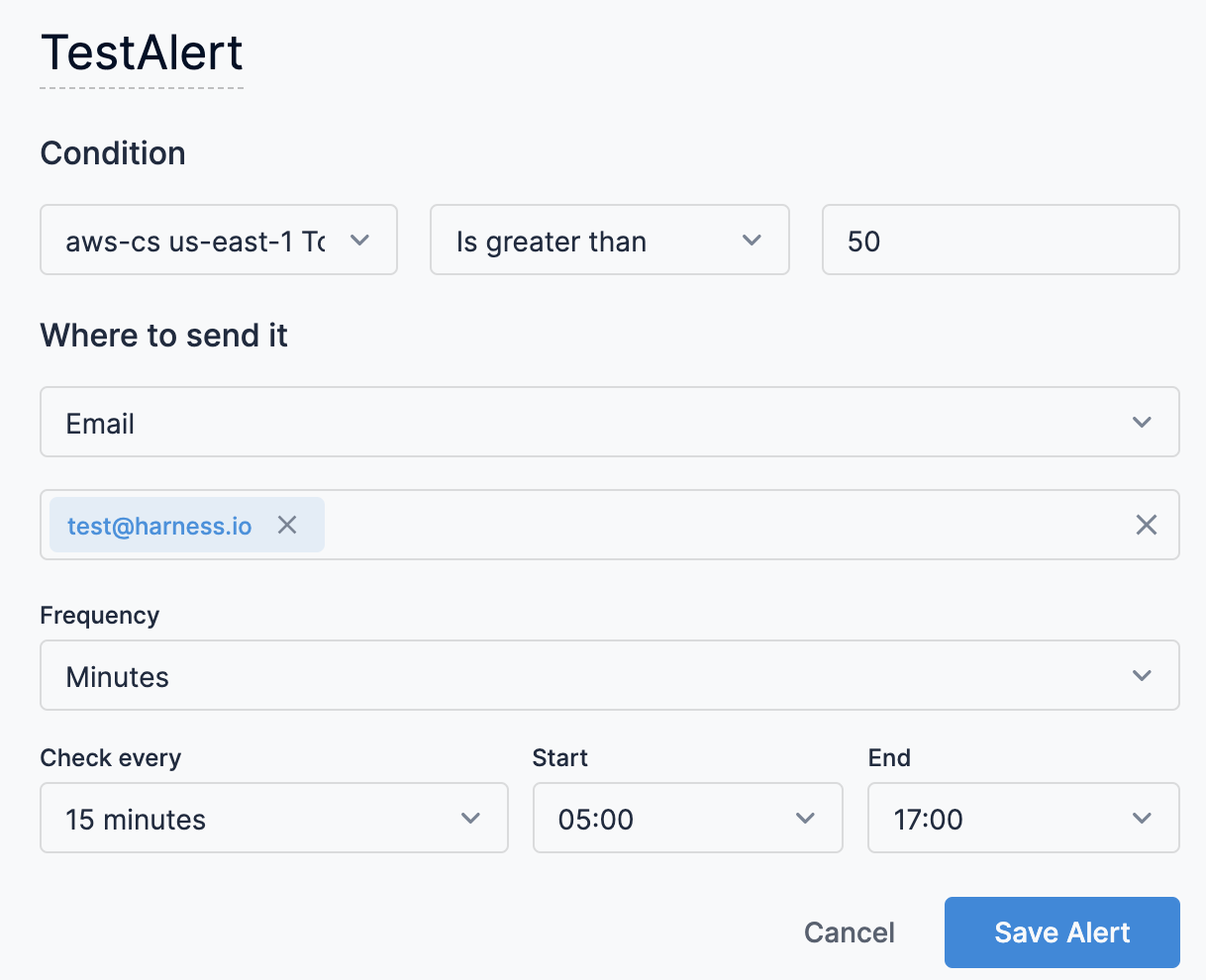 - The default alert title indicates which conditions need to be true for the alert to be triggered. If you want to rename your alert, enter a custom title.