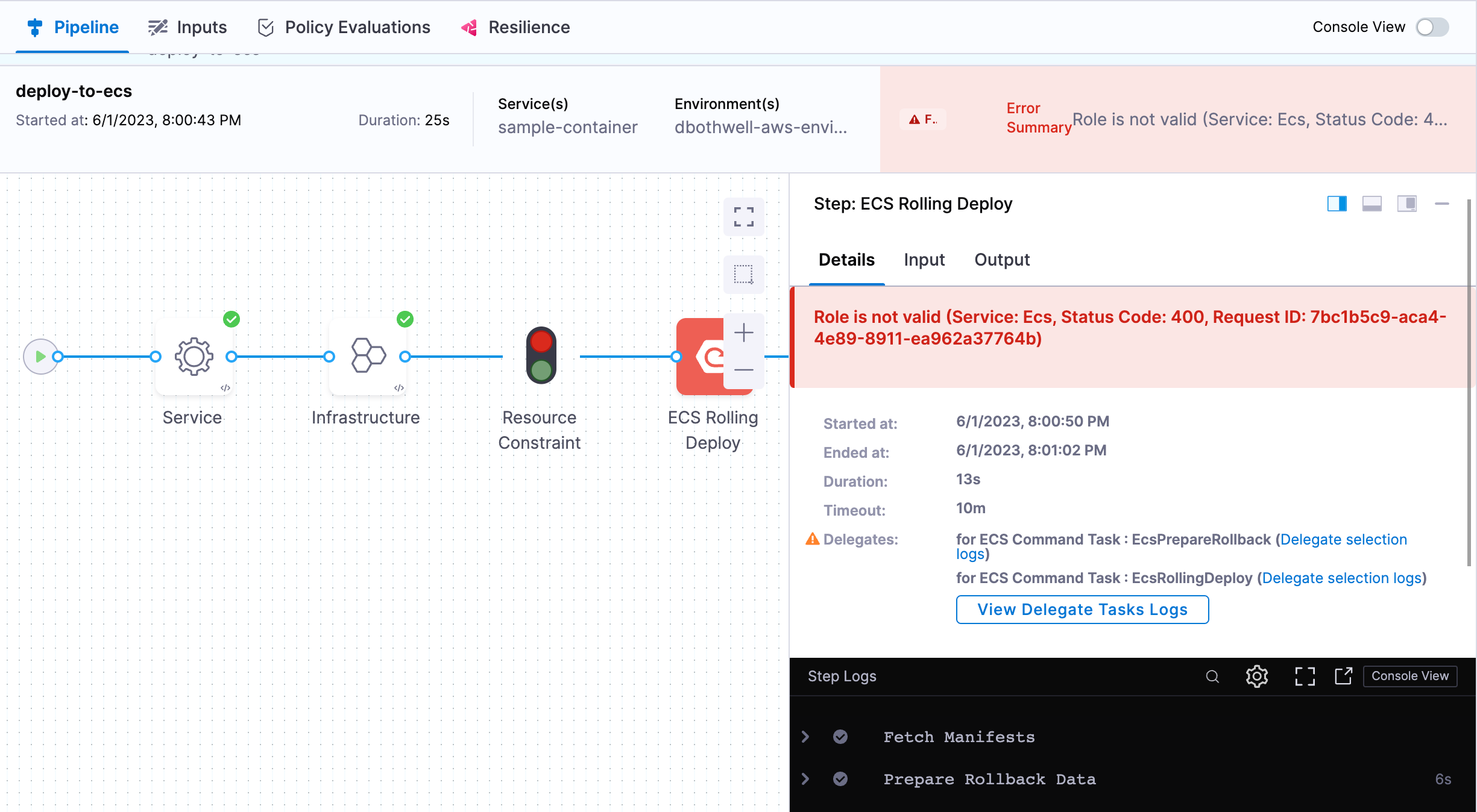 The delegate logs are available in the Harness UI. When a pipeline runs and an error occurs due to the delegate, the View Delegate Tasks Logs option becomes available.