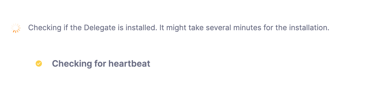 This means Harness is waiting for the delegate you installed to register. Registration can take a few minutes. Once the delegate registers, the Verify screen will indicate that the delegate is running.