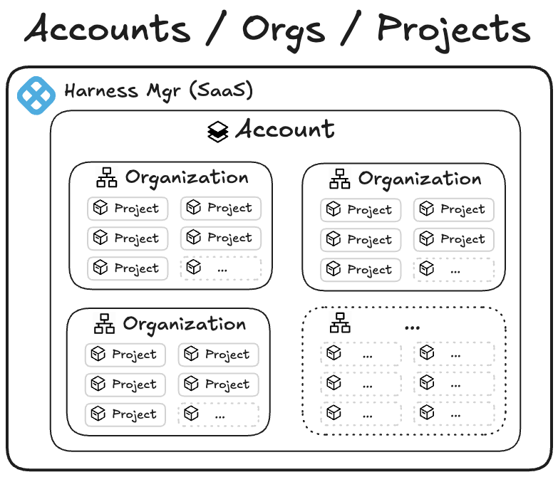 Harness organizations (orgs) allow you to group projects that are related and share the same goals. For example, all projects for a business unit or division.