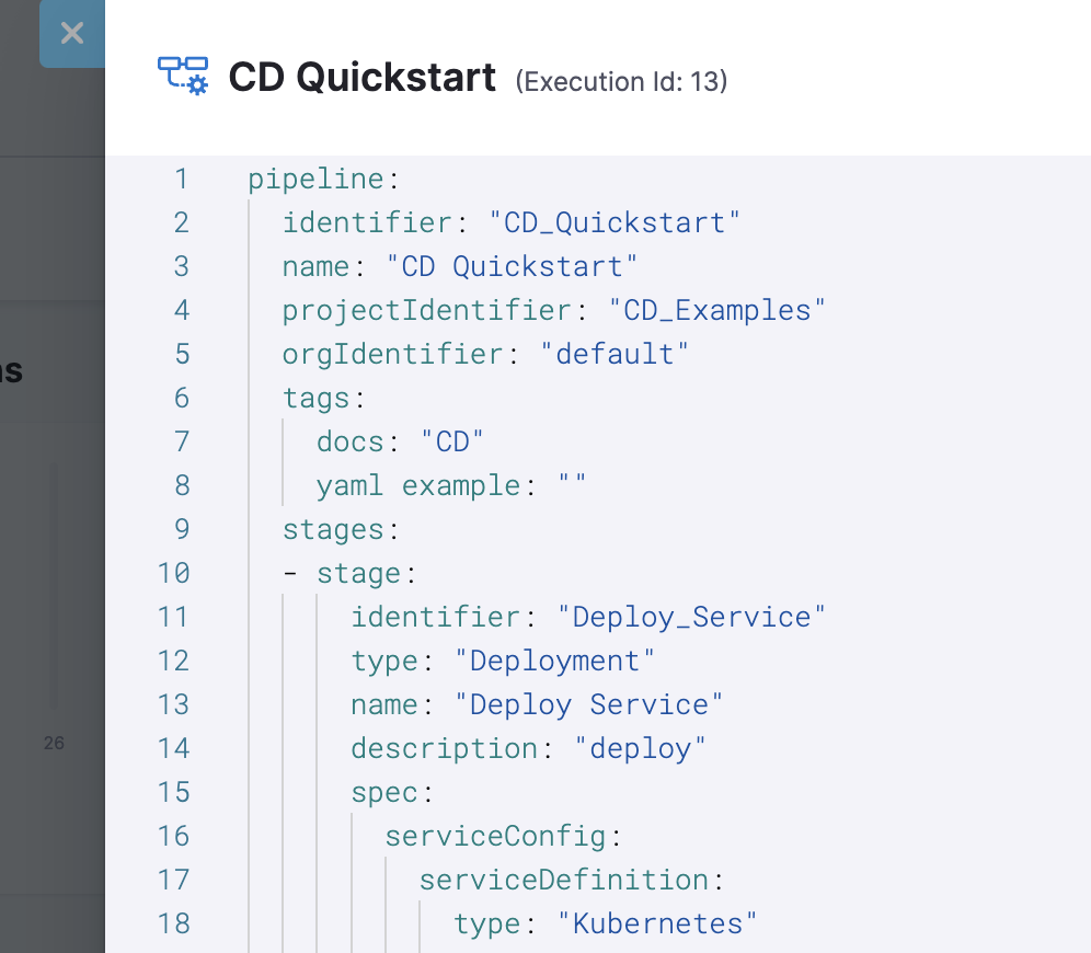 Harness produces a diff of the pipeline YAML for the two executions. This diff helps you identify the changes between executions, and it can help with troubleshooting.