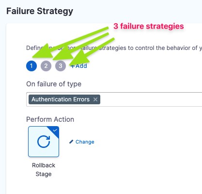 To add an additional stage failure strategy, select Add, and then configure the failure strategy settings: