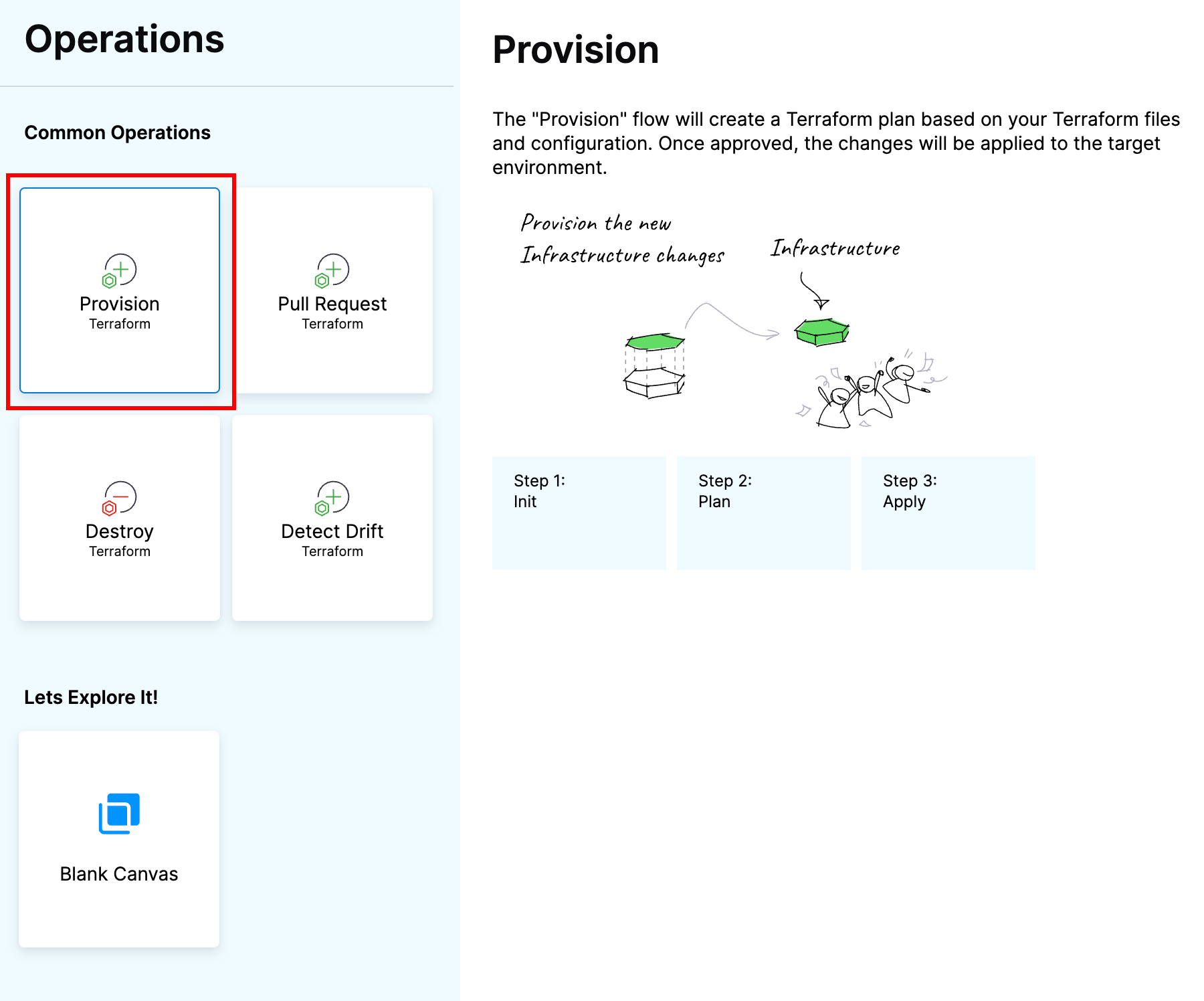 The first thing we need to do is make sure we have connectors to resolve Terraform code and AWS credentials.