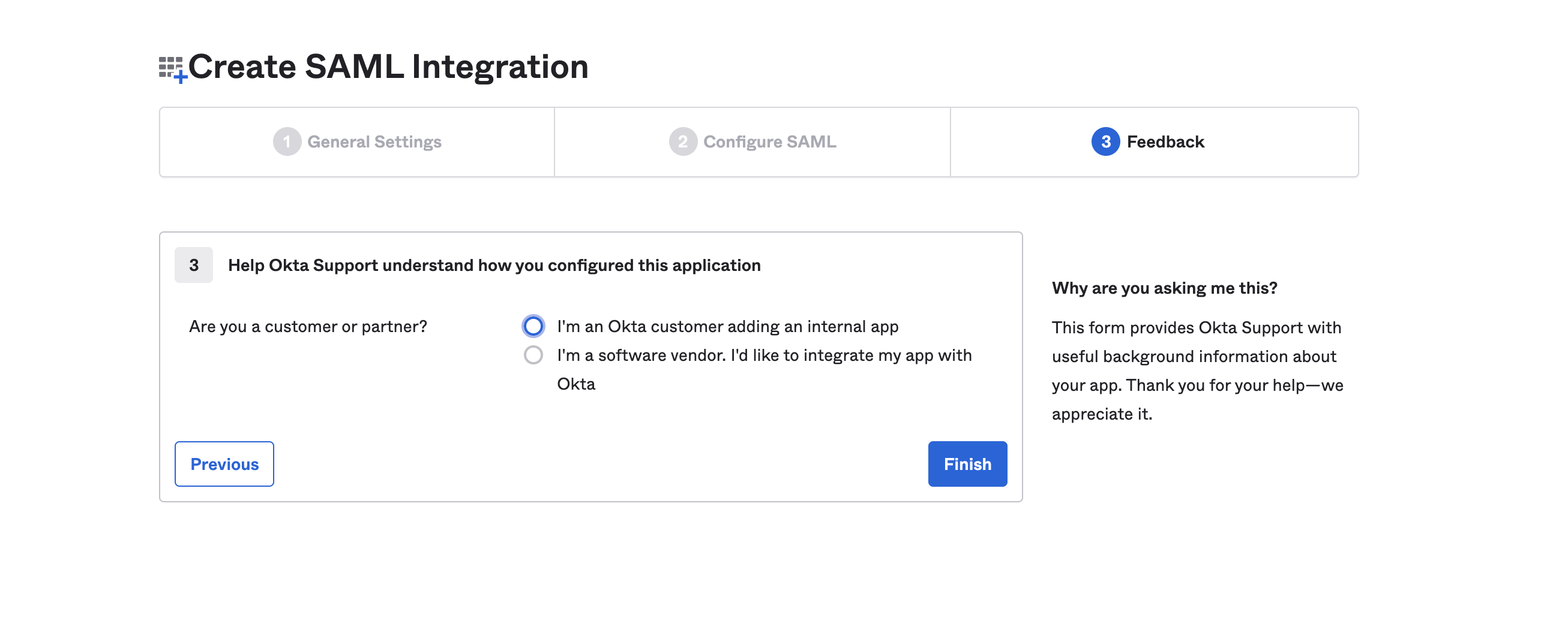 On the Create a new app integration page, select SAML 2.0 for the Sign-on Method, and then select Next.