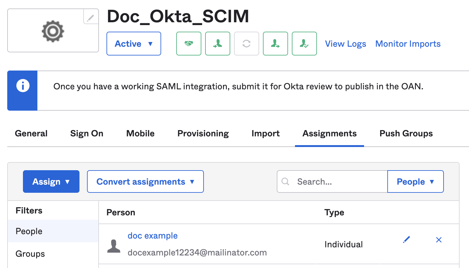 - You must use Okta to delete Okta-provisioned users from Harness. To delete an Okta-provisioned user, remove them from the corresponding Okta app.
