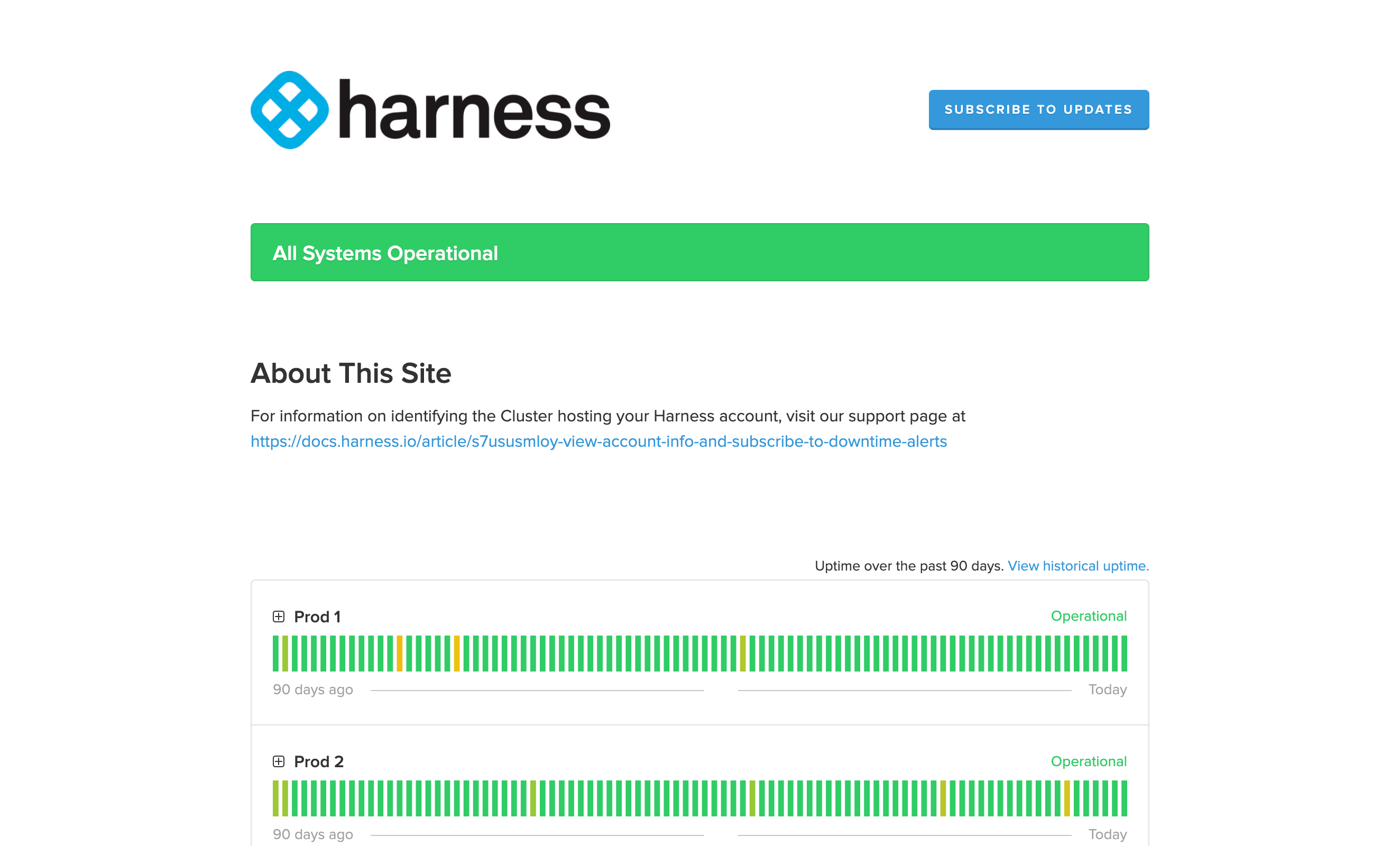 In Harness, select Help, and then select Site Status.