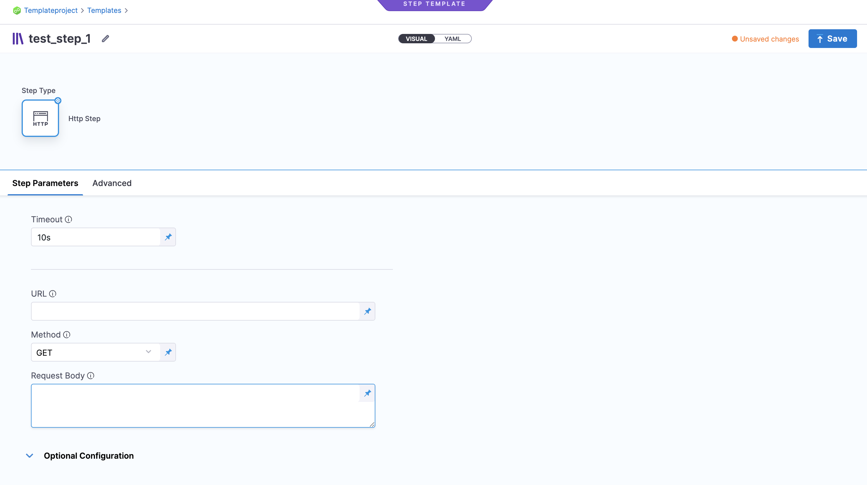 Select + New Template, and then select Step. The Create New Step Template settings open.