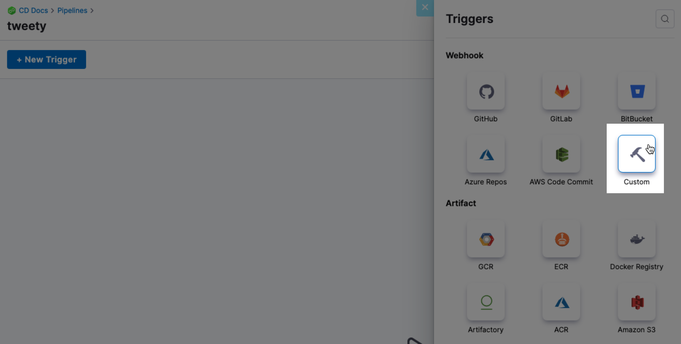 In addition to triggers that use Git providers, artifact providers, manifests, and cron scheduling, Harness includes custom triggers that you can use to run pipelines via cURL or a platform-agnostic Webhook.