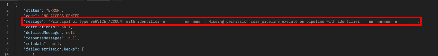 The account (service or user) must have enough permissions to perform the actions. If permissions are not set properly, Harness will advise about the lack of access due to missing permissions. Administrators should generally need to provide access for the pipeline, the services, and the environment.