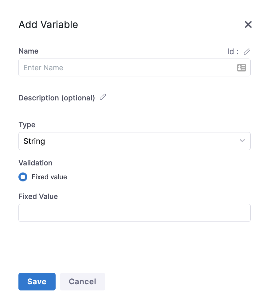 Enter a name, select the variable type, and then enter a value.