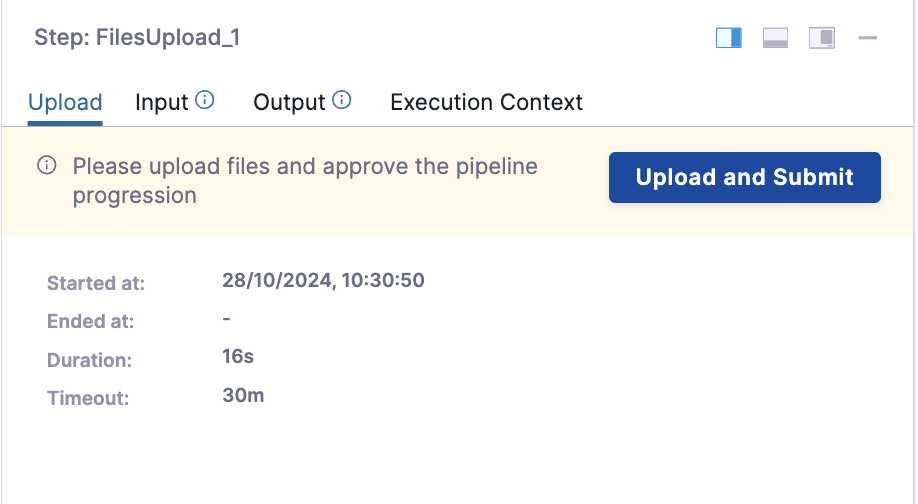jpg,jpeg,png,pdf,xls,csv,xlsx,txt,json,yaml,xml, andhtml. - The total number of upload steps per pipeline cannot exceed two. This includes using templates, saving directly as YAML, or saving through the UI.