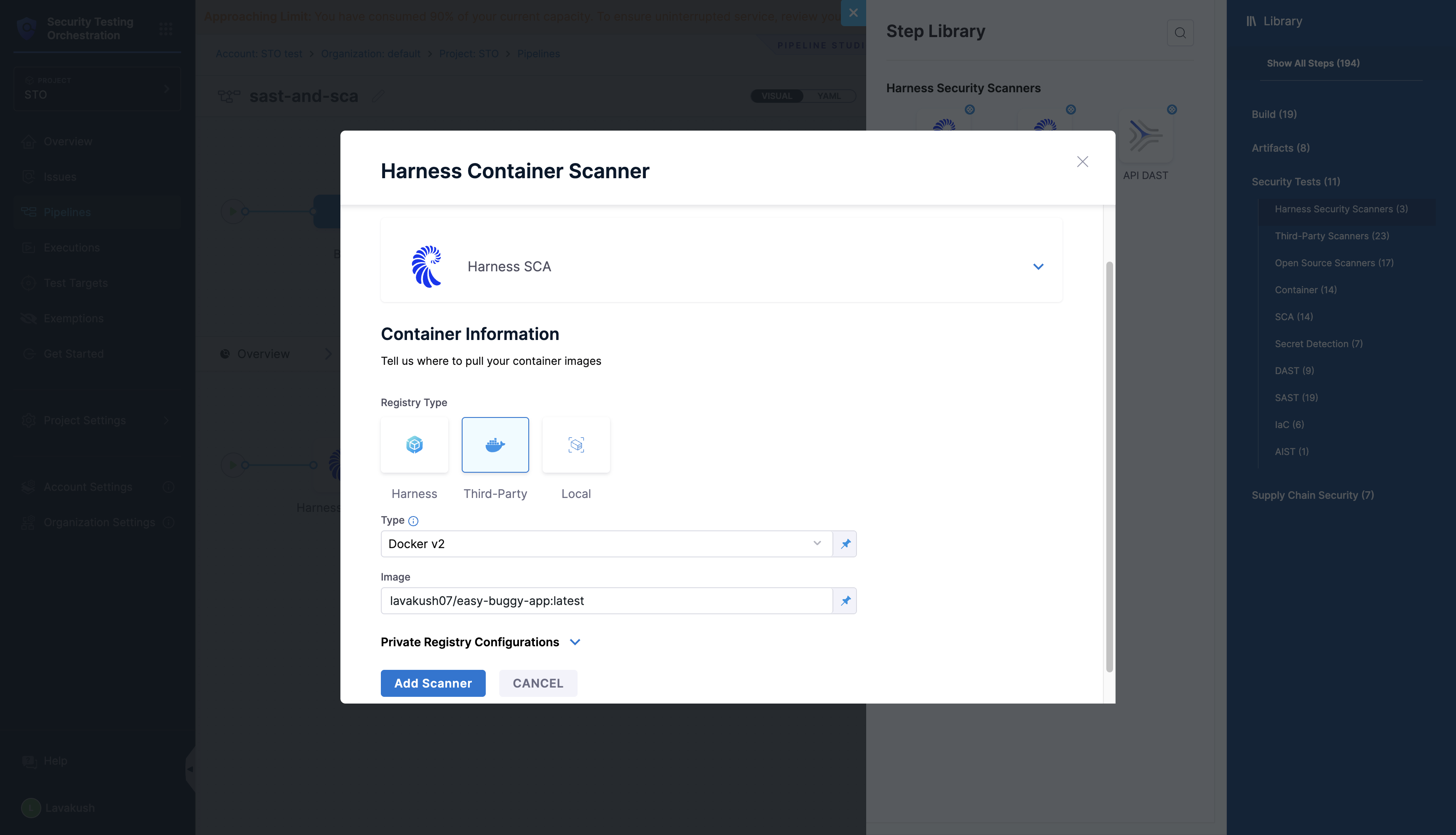 A 45-day free trial is available. If you are an existing Harness STO customer and want to access the Harness scanners, contact the Harness sales representative to have them enabled for your account.