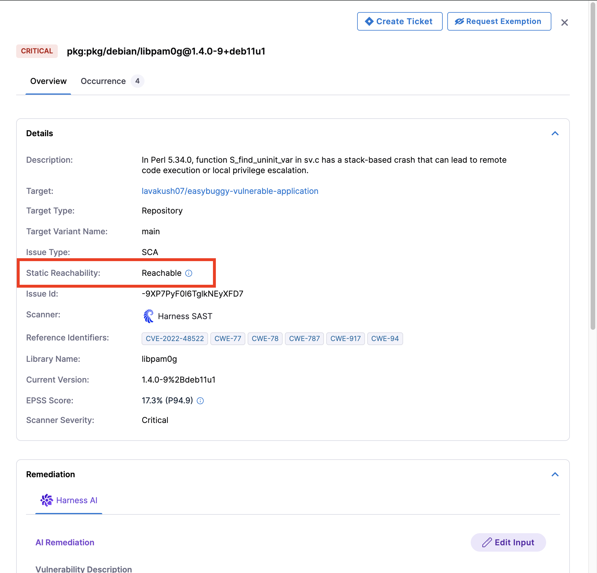 To view Reachability information in Harness SCA, you must run the Harness SAST scanner. The scanner uses SAST based data flow analysis to understand how data moves through your code and determine whether an issue is reachable.