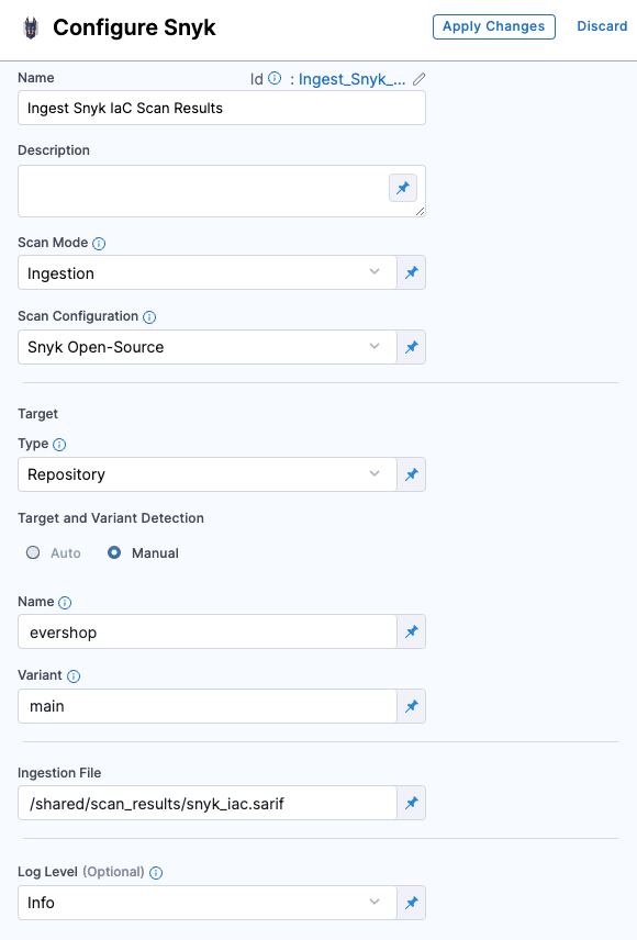 /shared/scan_results/snyk_iac.sarif - Apply your changes, save the configuration, and run the pipeline.