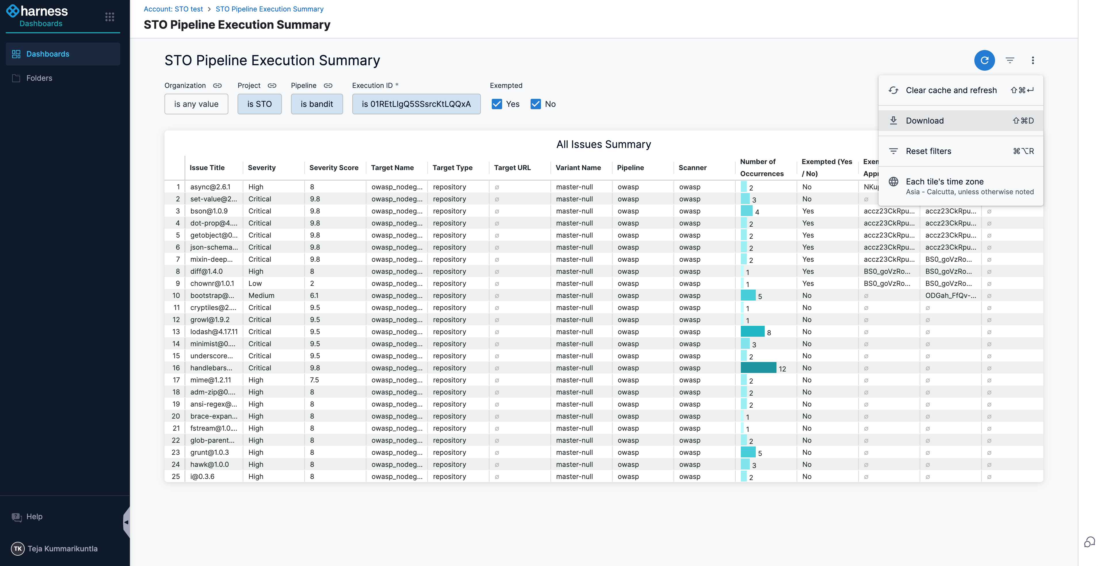 - Navigate to the STO Pipeline Execution Summary Dashboard.